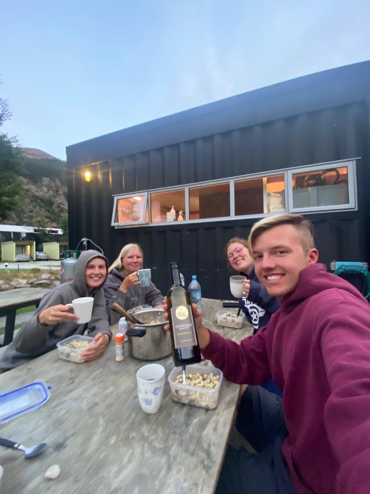 Nachdem wir endlich fertig waren, ging es für uns, in die Stadt, auf den Campingplatz, wo wir uns Nudeln mit Pilzsoße gekocht haben. Zu dem Wein von Ben, so haben wir es uns zumindest überlegt, sollte auch ein edles Essen her.