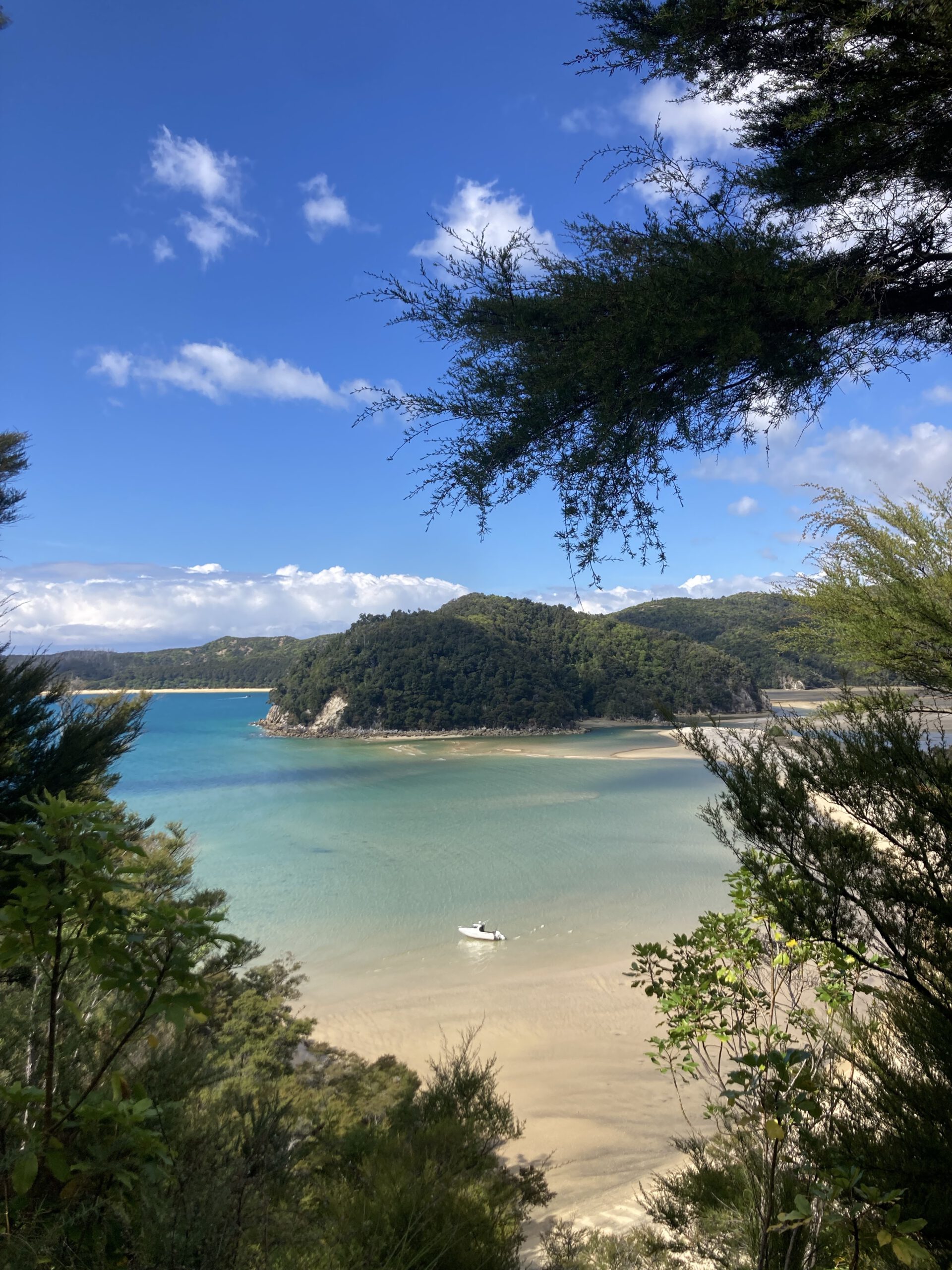 Frühstück habe ich an einem einsamen Strand gemacht und den Ausblick/das Meer genossen. Die Blicke wurden auch, auf dem Rest der Wanderung, nur besser und beeindruckender. Das Einzige kurze Problem bestand darin, dass ich mich für die „low tide“ (also Ebbe) Route entschieden hatte. Da diese aber schon vor ungefähr einer Stunde war, ist das Wasser langsam in die große Bucht geflossen, weshalb ich ab einem bestimmten Punkt, meine Schuhe ausziehen musste. Das wäre an sich jetzt nicht so schlimm gewesen aber dort lagen super viele scharfe Muscheln herum, die mir, mit Leichtigkeit, den Fuß hätten aufschneiden können. Das wäre super schade gewesen, da die Wanderung danach natürlich gelaufen wäre, aber auch hier hatte ich Glück. Kurz nach Mittag bin ich schon auf meiner nächtlichen Hütte angekommen und nach einem kurzen Mittagessen habe ich mich auch hier wieder an den Strand gelegt und war baden.